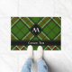 Green, black, red and white tartan design. Seamless pattern. Custom text and monogram.