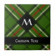 Green, black, red and white tartan design. Seamless pattern. Custom text and monogram.