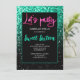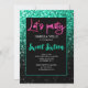 Green black sparkles Sweet 16 neon lets party Invitation