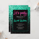 Personalize and customize faux sparkly Sweet 16 invitation. Sweet Sixteen collection by PLdesign: Beautiful girly glamourous vibrant green black ombre shiny glitters sparkles Invitation. Photo of sparkles glitter and cool bright neon imitation Let's party. No messy glitter to the touch!