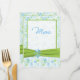 Green, Blue, and White Floral Wedding Menu Card