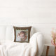 Adorable stylish chocolate brown pillow features cute blue snail and green leaves, along with your favourite baby, boy, kids or family photo and a personalized name. Cute and handsome toss cushion for a boys room, custom decor in a green or blue and brown colour scheme. Design Copyright © Cutecomfy.com