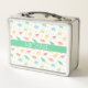 Green Blue Dinosaur Pattern Custom Name Metal Lunch Box