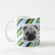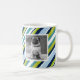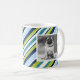 Cute personalized photo mug with a trendy green, blue and white stripe pattern background. Add your own personal touch to a mug by adding photos of your kids, pets, and other family members.