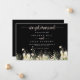 This green boho wildflower black elopement announcement has a beautiful rustic design. The design features watercolor pink, blush, yellow, and white wildflowers arranged in elegant bouquets.