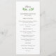 Cette élégante carte de menu de mariage botanique présente une empreinte verte de feuilles, sur un arrière - plan blanc propre. Nous avons utilisé l'art de LABFcreations.