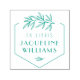 This custom green library self-inking stamp is perfect for book lovers. Featuring "Ex libris" in a clean sans-serif font and your name in a matching type that you can easily personalize, with hand-drawn botanical leaves decorating a hexagonal border.