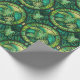 Green botanical-themed wrapping paper featuring repeating circular patterns with leafy designs. The image shows both an unrolled and flat view.