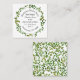 A botanical business card featuring a wreath of green leaves on front.