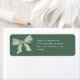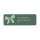 Elegant christmas holiday return address labels featuring a stylish green background, a beautiful watercolor bow, your family name, and address.