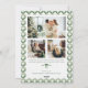 These editable vintage green Christmas photo cards are a perfect way to share the holiday cheer and a merry holiday season. The IRVING Collection features a photo of your family under a Christmas garland adorned with an elegant velvet green bow and ribbons on the front with an editable MERRY CHRISTMAS message in a serif in green and your family's name and the year in a classic serif font in green. A back is included with three family photos and a note, along with a green bow. Dark green ribbons and a christmas garland adorn a vertical photo holiday card that showcases your family photo, with a green garland and ribbon pattern.