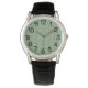 This men's watch has an art deco design of triangles and diamonds that look like bowties in light green and sage green.