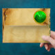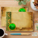 GREEN BROWN DAMASK PARCHMENT WITH SHAMROCK ENVELOPE