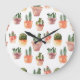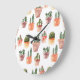 Green Brown Potted Cactus Pattern Large Clock