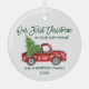 Modern Brush Script Our First Christmas in our New Home Glass Ornament includes Watercolor Vintage Red Truck with Christmas Tree - Forest Green Script