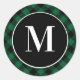 Green Buffalo Plaid Initial Monogram Classic Round Sticker