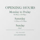 Make your business hours clear and stylish with this customizable Window Cling! Perfect for storefront doors and windows, this reusable cling displays your opening hours with a clean, professional design that catches the eye. Easy to apply and remove without residue — ideal for shops, cafes, salons, and offices.