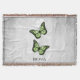 Add a touch of colour to your living or bedrooms with a Green Butterfly Floral Personalized Throw Blanket. Blanket design features a pair of vibrant butterflies resting on a white floral vine against a light grey grunge background. Additional gift items available with this design as well as a variety of colours.