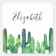 Green cactus. Watercolor cacti. Name. Botanical Square Sticker
