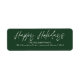 Green Calligraphy Happy Holidays Return Address label features a modern calligraphy.