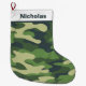 Cool green camouflage pattern Christmas stocking for a boy who likes custom camo designs. Fun Xmas hunting lodge decor.
