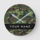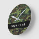 Green Camouflage Pattern, Your name, Personalize Round Clock
