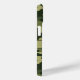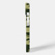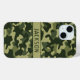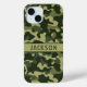 Customize this multi-hued green camouflage iPhone 15 case with your name in a trendy modern CAP font in dark green on light green. It's masculine and perfect for your favorite military, hunting, country or outdoorsman!