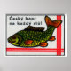 Green Carp Fish - Matchbox Print - Czech Wall Art - Vintage Czech Art - Matchbox Wall Poster - Vintage Poster Print 1