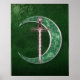 Fantasy artwork of a Green Celtic Art Moon with a fantasy sword surrounded by Celtic Knots.