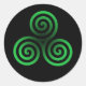 A large green spiral Celtic triskele, or triskelion. This is an ancient symbol dating back to Neolithic times in Western Europe, and is an important emblem of Celtic culture.