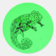 with original design of watercolour and ink illustration by artist Sacha Grossel of brightly coloured green, patterned chameleon against a bright, apple green background. This quirky illustration of this reptile is cute and funny and for lizard and animal lovers everywhere.