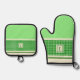 Green Check Monogram Oven Mitt & Pot Holder Set