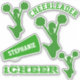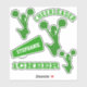 Cheerleader themed sticker set sheet done in green and white, with silhouettes of cheerleaders, megaphone and graphic text. Personalize the name, on the megaphone, to read what you want.