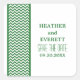 Chic and modern Chevron Border Save the Date Stickers featuring a simple chevron pattern border in dark green and white. This stylish design will set the tone for an elegant wedding. Easy to customize, simply add your wedding details in the text fields provided. Click "Customize It" to find more personalization options.