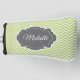 Create a unique golf gift with a Green Chevron Personalized Golf Head Cover. Cover design features a green chevron background and an ornate grey tag to personalize with your name and monogram. Additional items available with this design as well. Please contact me directly for assistance with personalization.