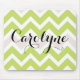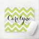 Customizable mousepad featuring beige and spring green chevron pattern with modern calligraphy script. A stylish pop of colour, perfect as a gift.