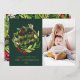Green Christmas botanical elegant modern photo Foil Holiday Card
