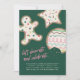 Invite kids of all ages to decorate Christmas cookies and celebrate the holiday season with this festive cookie decorating party invitation. Cookies in the shape of a gingerbread man, star, and circle are playfully decorated with frosting and a variety of colourful sprinkles. The illustration is placed on a green background with a speckled texture, and accompanied by handwritten script lettering with the phrase "let's decorate and celebrate..."
