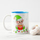 Green Christmas elf, snowflakes & Christmas balls Two-Tone Coffee Mug