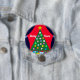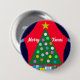 Green Christmas Tree & Blue Drapes: 3 Inch Round Button