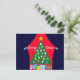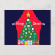 Green Christmas Tree & Blue Drapes: Holiday Postcard