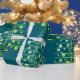 Green Christmas Trees Laden Ornaments Teal Blue Wrapping Paper