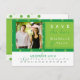 Save the date postcard with light green circles and a dark green background. Customize the postcard with your month and circle the day. You can see more designs on my website: www.darmanddesigns.com
