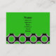 green circles colourful business cards. Colourful card design for business or personal use. Add your MySpace, Facebook or LinkedIn information to this artistic profile card. Or use this colourful art card for your own unique business cards or calling cards. This digital abstract art design will definately make your business card stand out with your friends, clients and customers. Business cards are made with 2-sided, full colour printing. 10 types of card stock are available including standard, premium or luxury. Business cards are customizable, you can change the font style size and colour. Volume Discount available when you buy in bulk.