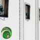 Green circular stairway captured in a school in Zurich, Switzerland.
