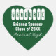 Dark green heart-shaped sticker will look fabulous on graduation announcements, graduation invitations and party favours. Don't forget you can also decorate the top of a graduation cap as well with them. All of the text on this green heart sticker can be easily customized. Three modern and contemporary fonts give this green graduation envelope seal a hip and cool look.