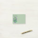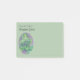 Personalized text is featured on this post-it note pad that is embellished with pastel artwork depicting three leaved clover or shamrocks in soft green on a muted purple background.
