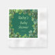 Green clovers painted around a green background. The text is white with green outline and a lighter green shadow as a fully customizable for a baby shower for a mother to be.