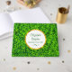 A wedding guestbook with a irish springtime design - with a fresh springtime design with a field of lush green clover with dainty little water drops. Personalize with your names and wedding date in the centre of a white frame with a FAUX gold foil border.