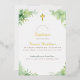 Enjoy this beautiful natural greenery corner borders with real foil cross at top, for your baby's baptism. All templates provided for customizing.
